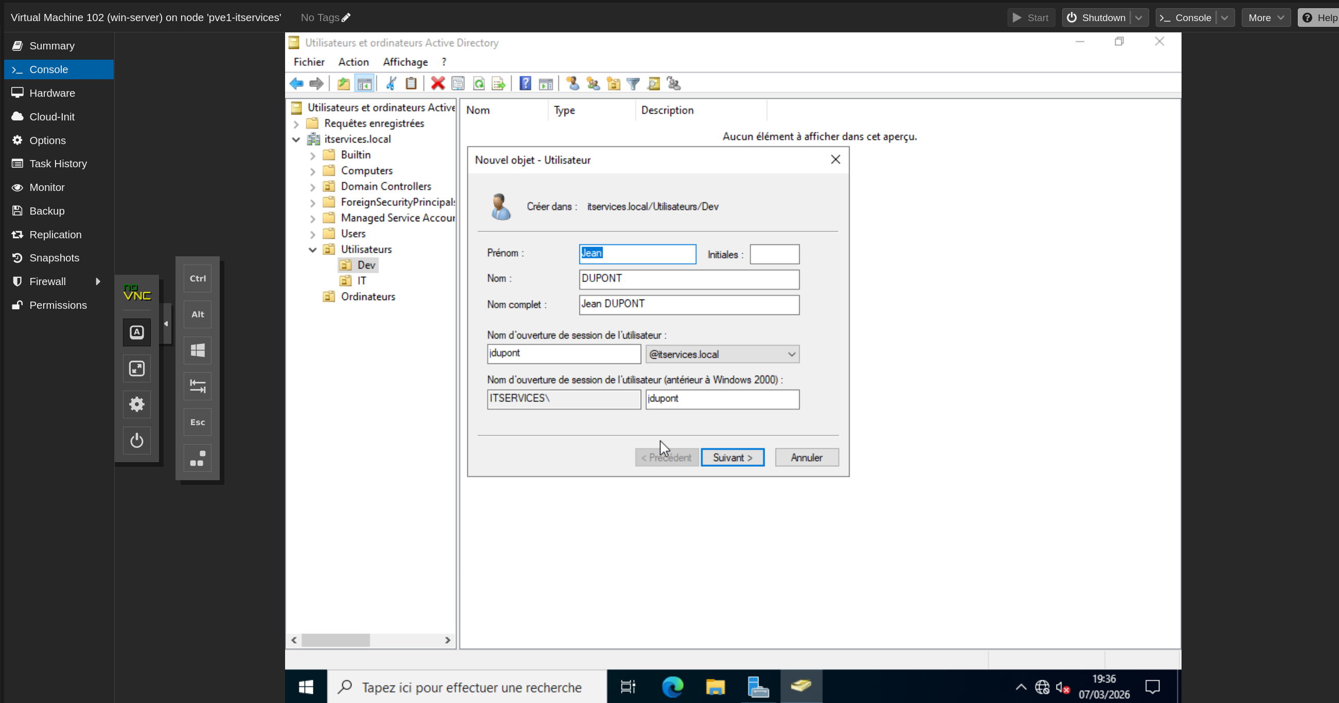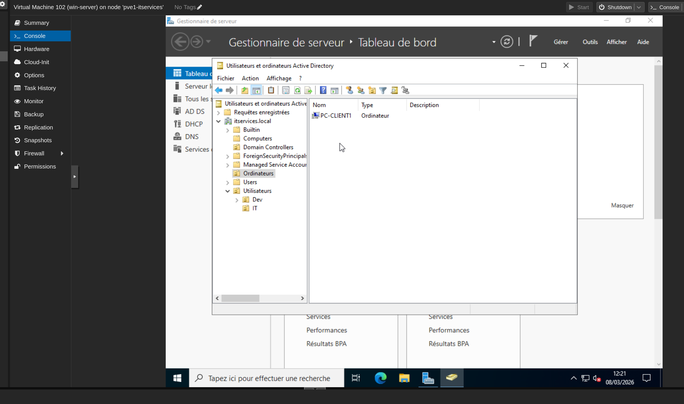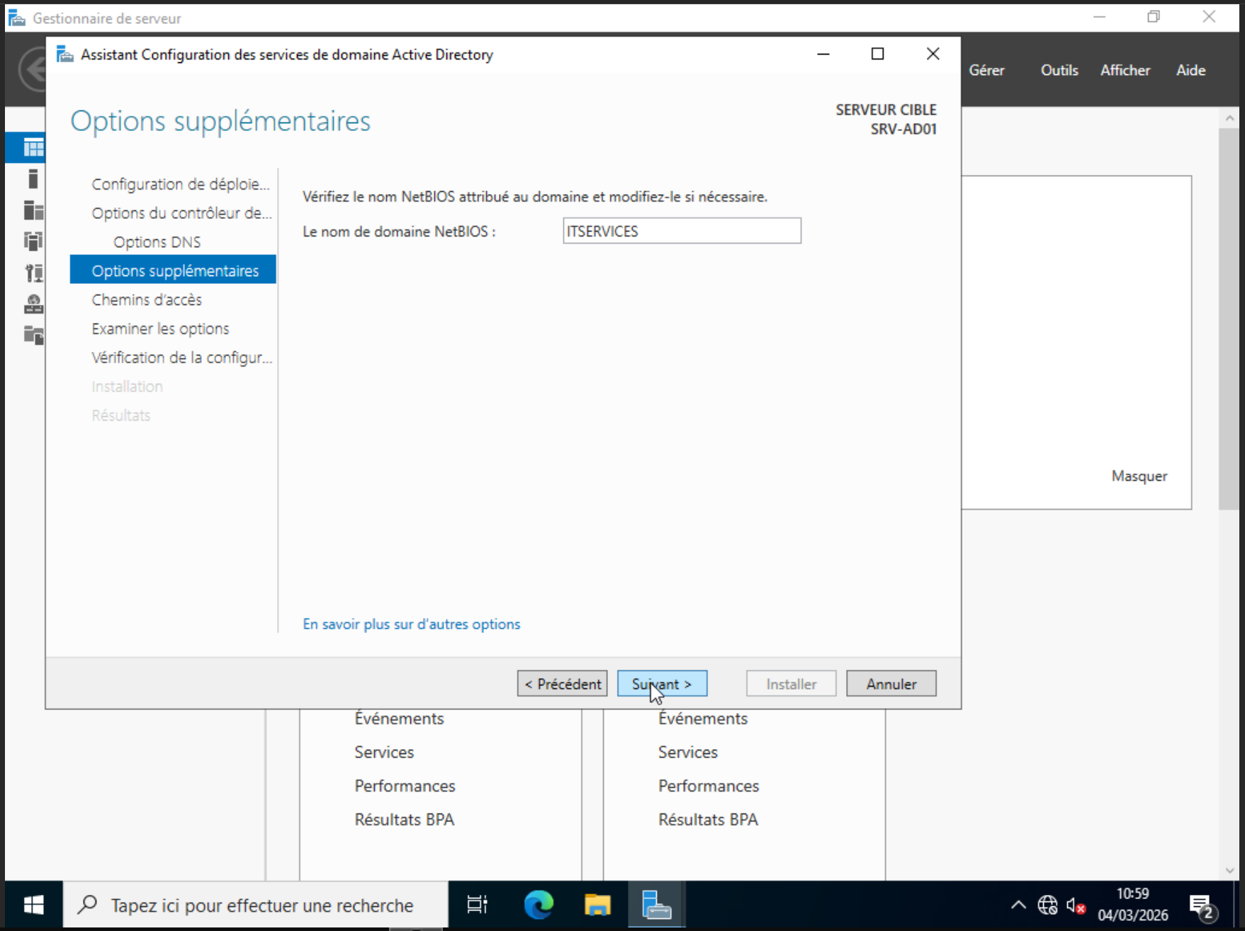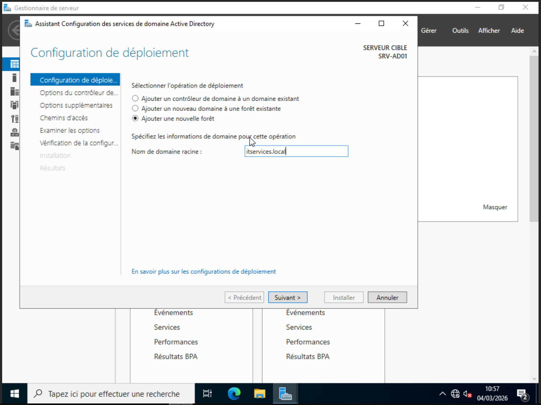 VM Windows 10 demande : srv-ad01.itservices.local