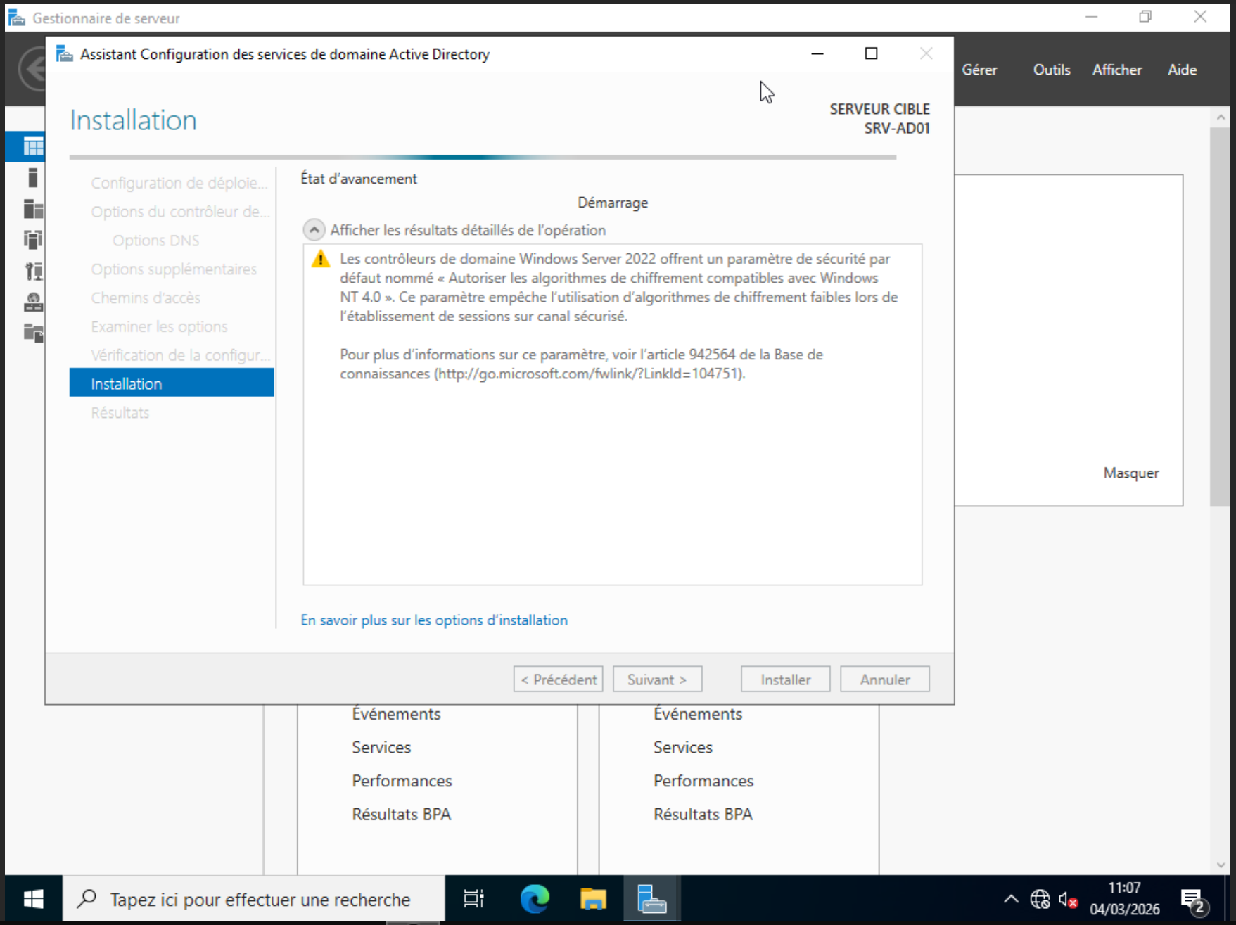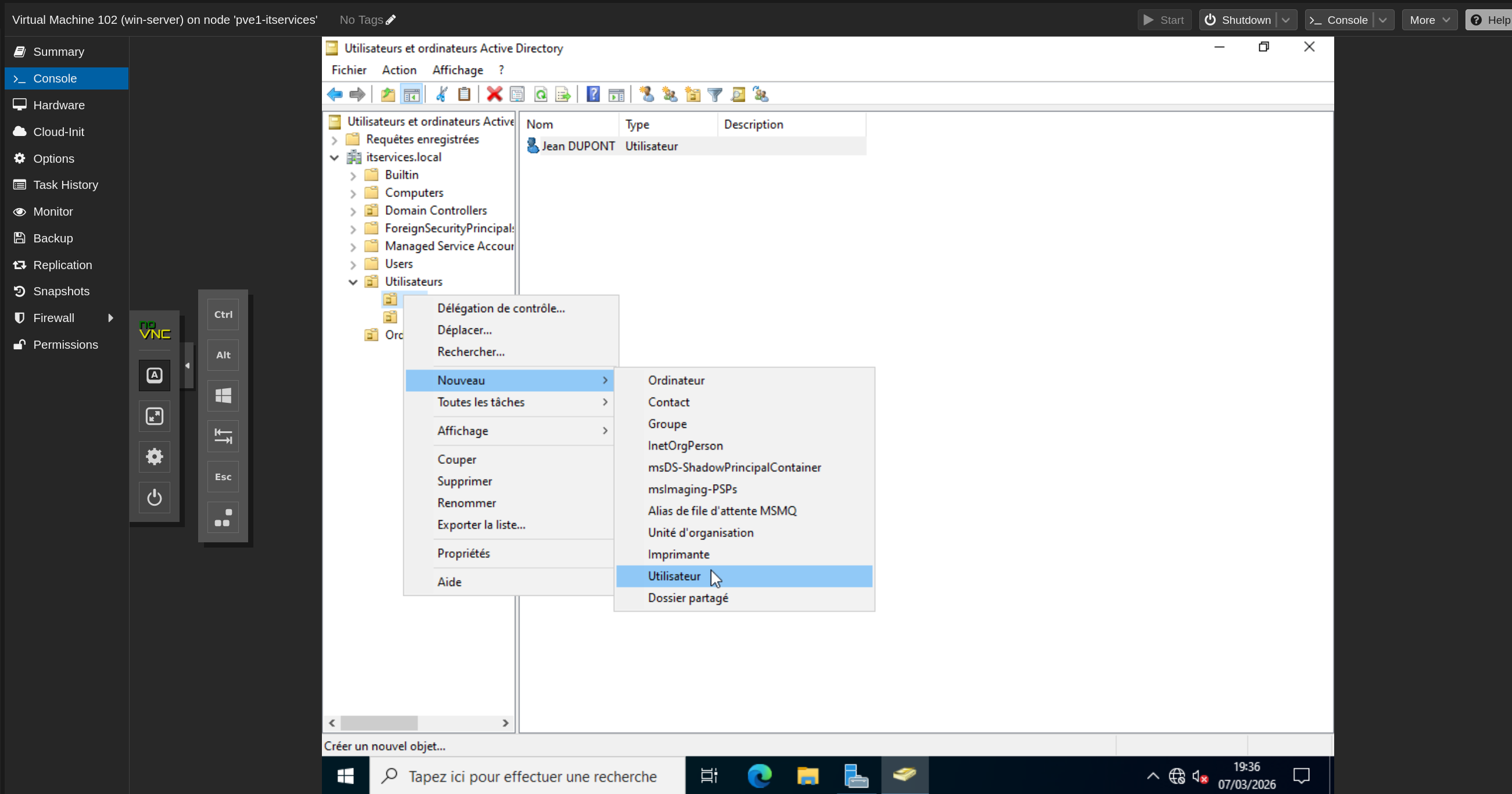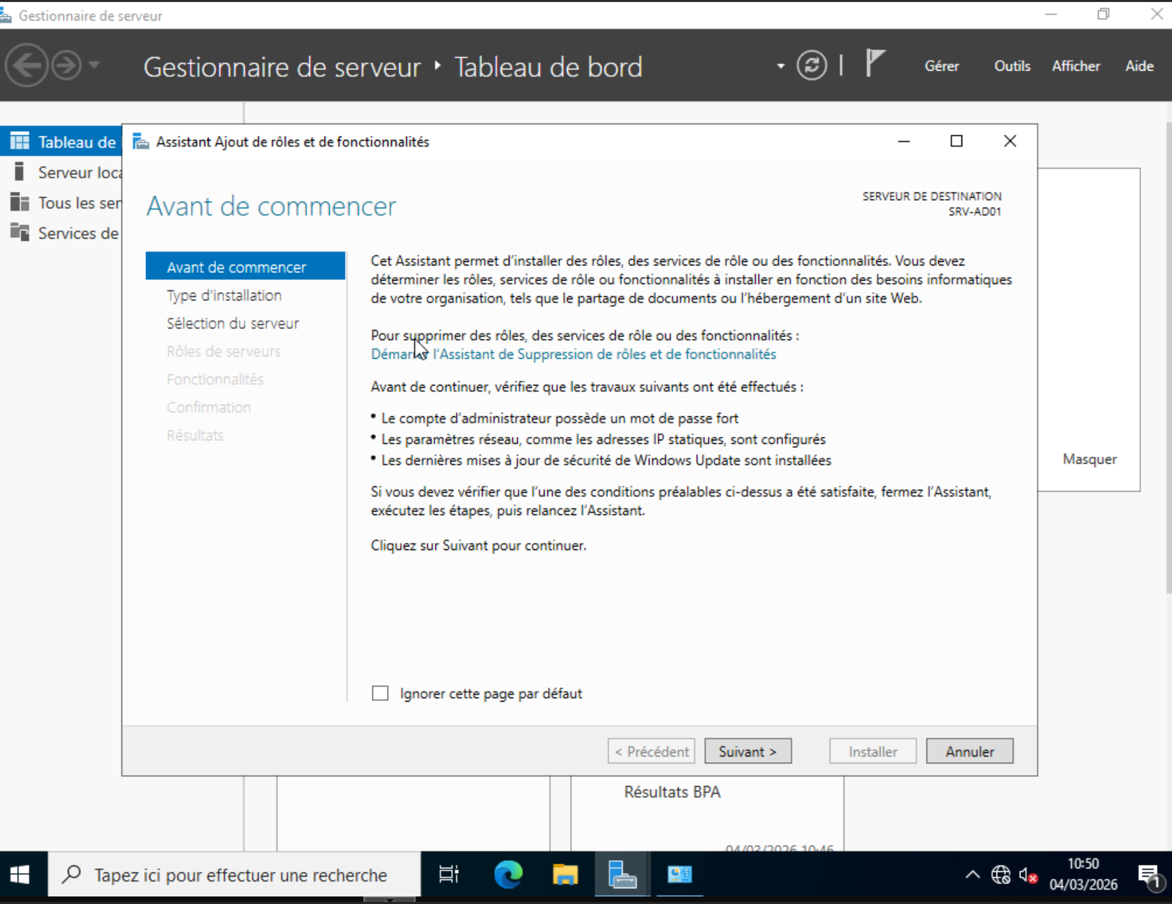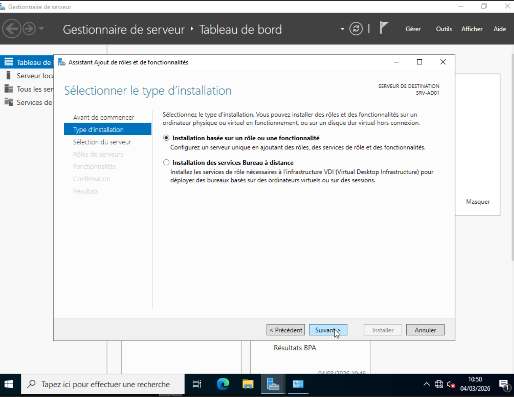 VM Windows 10 demande : srv-ad01.itservices.local