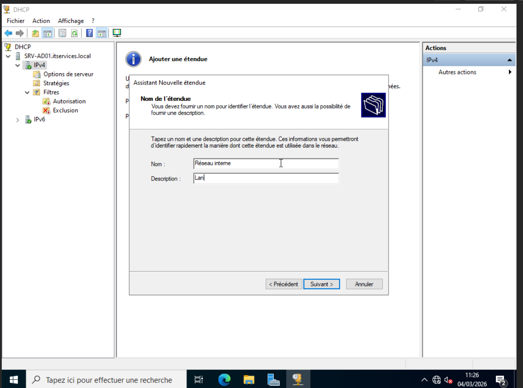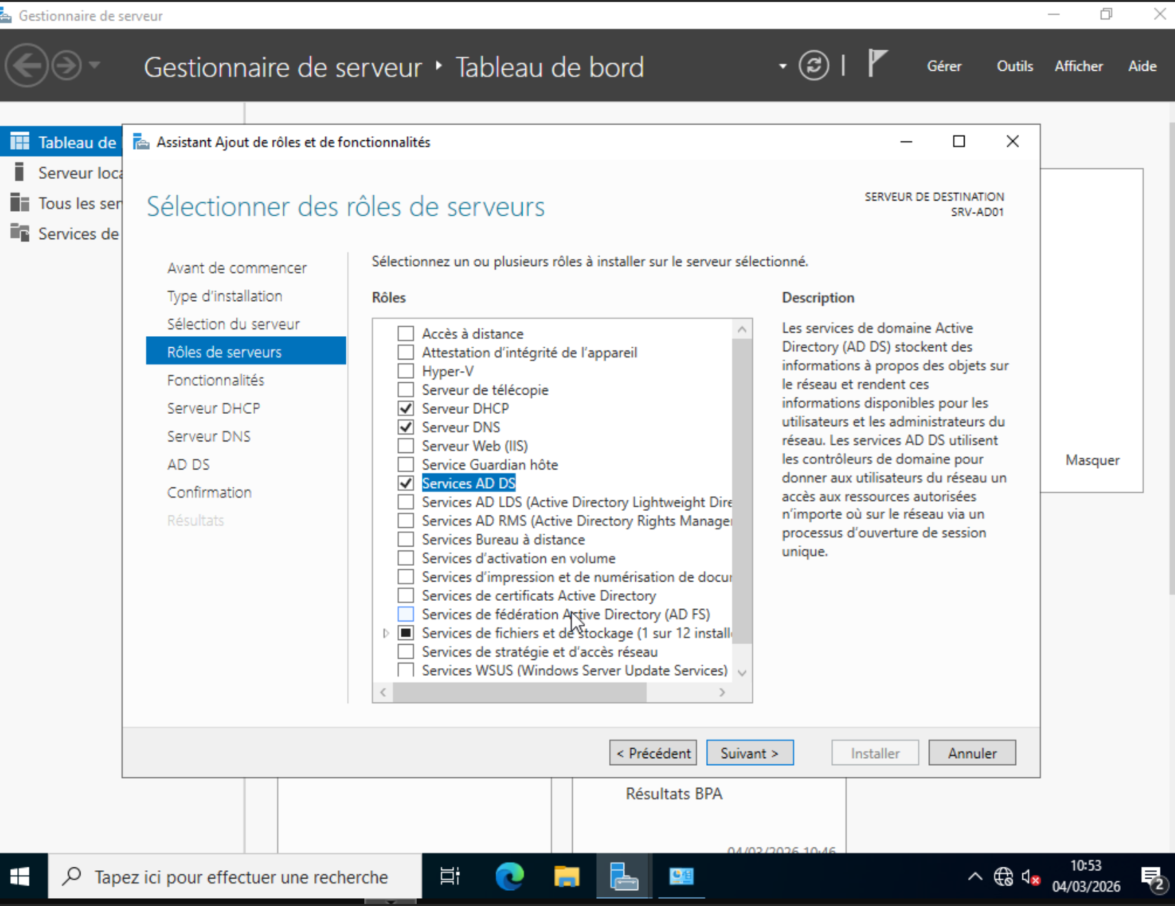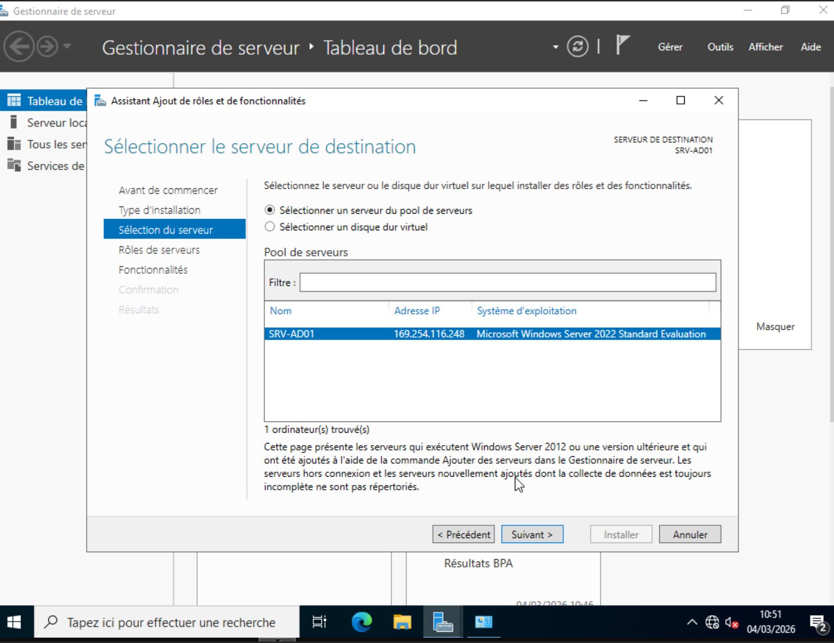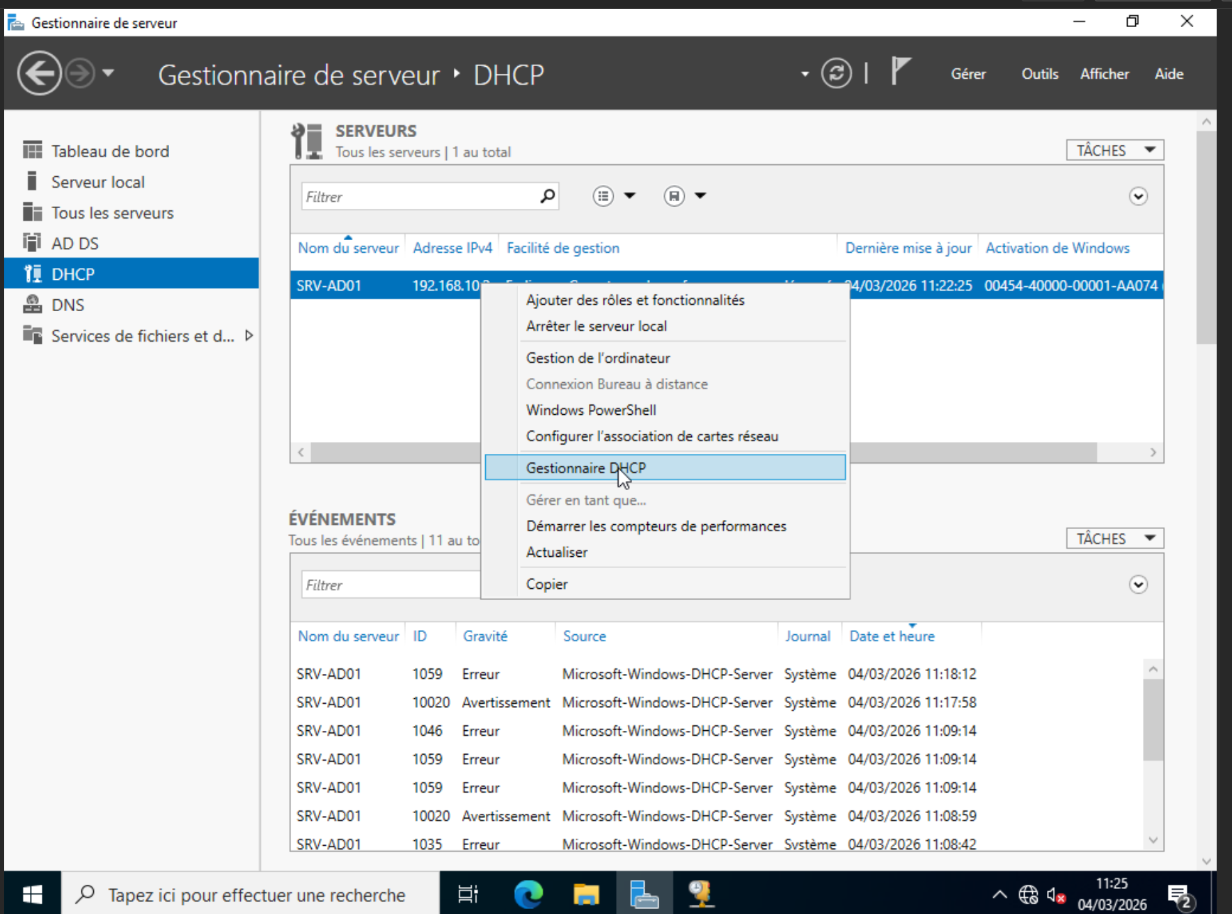 VM Windows 10 demande : srv-ad01.itservices.local