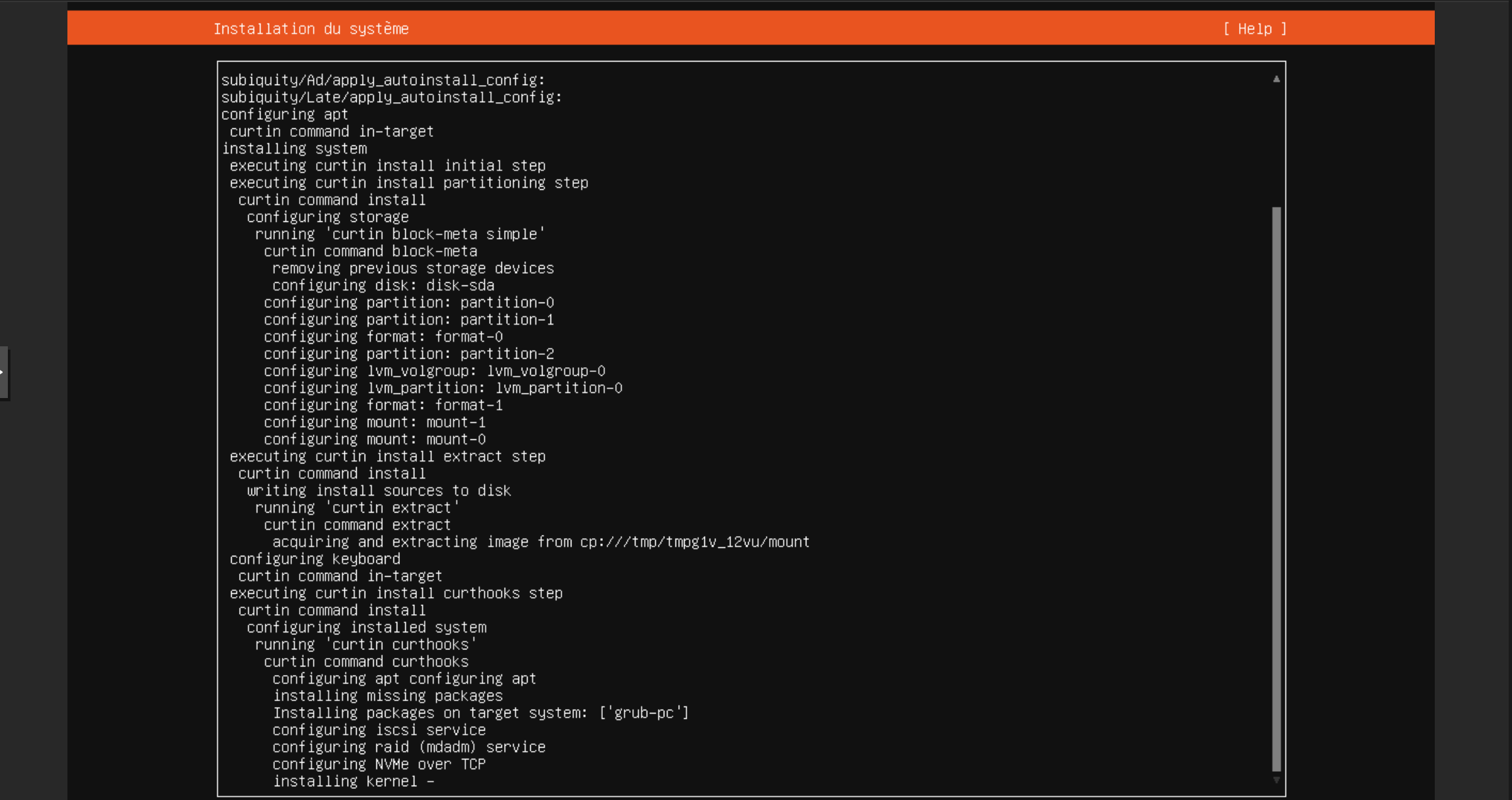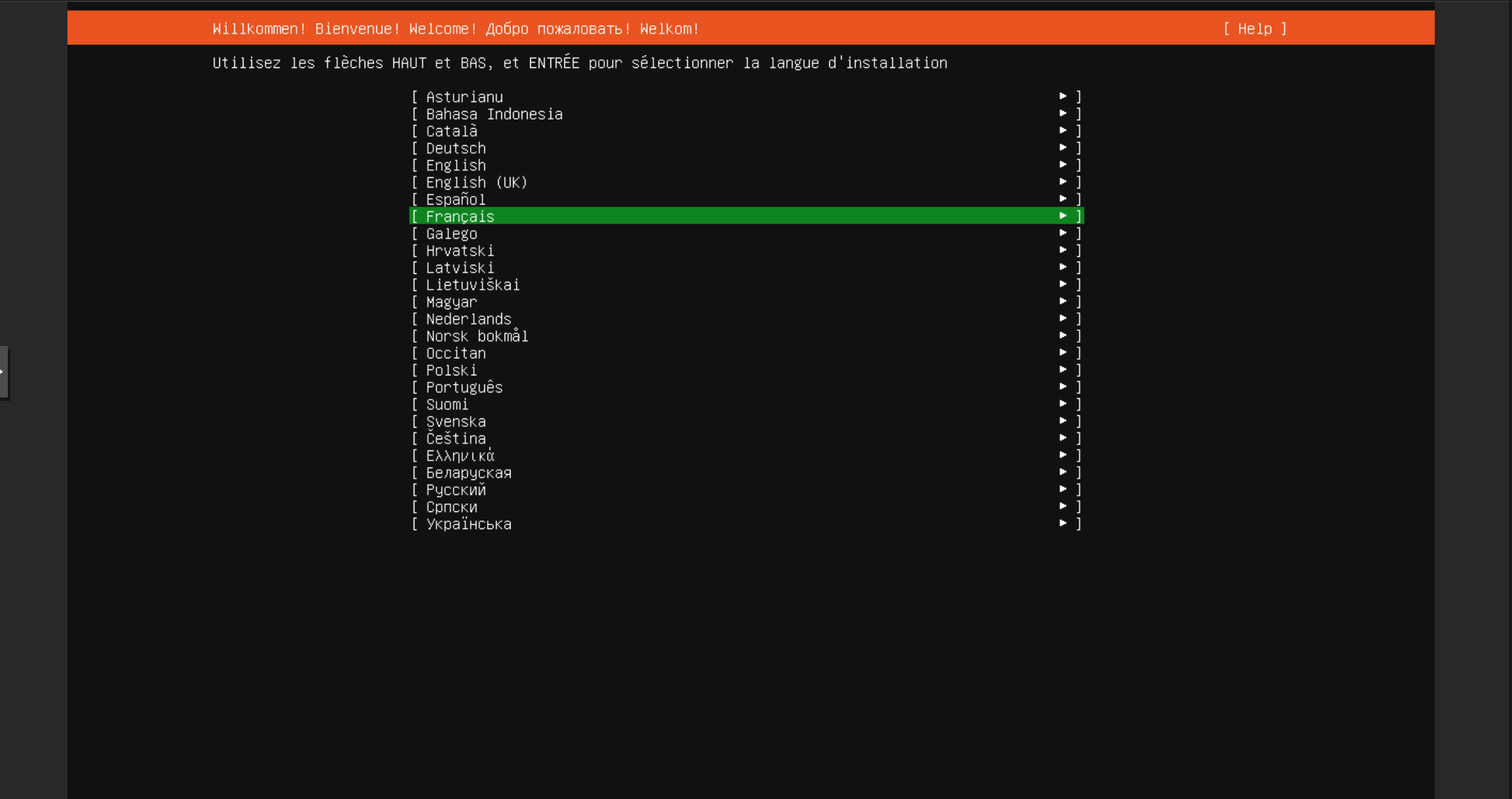 - D'une clé USB bootable (si installation physique) ou d'un montage ISO via KVM distant