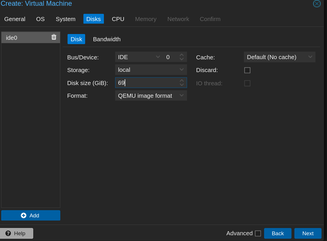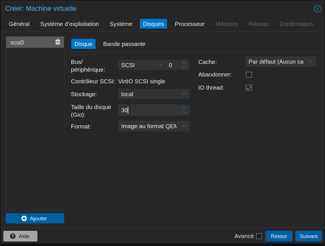 | Disque | 60 Go, SCSI, VirtIO |