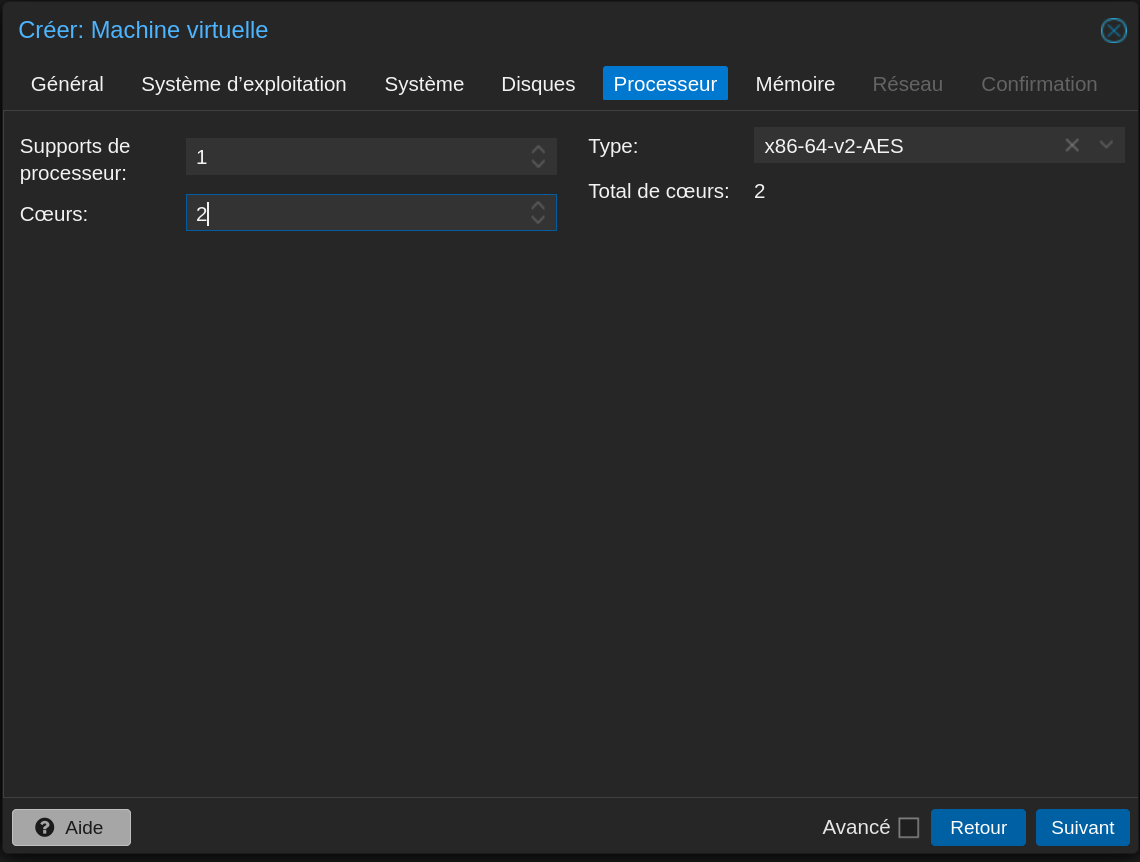 | Carte réseau 2 | vmbr1 (LAN) |