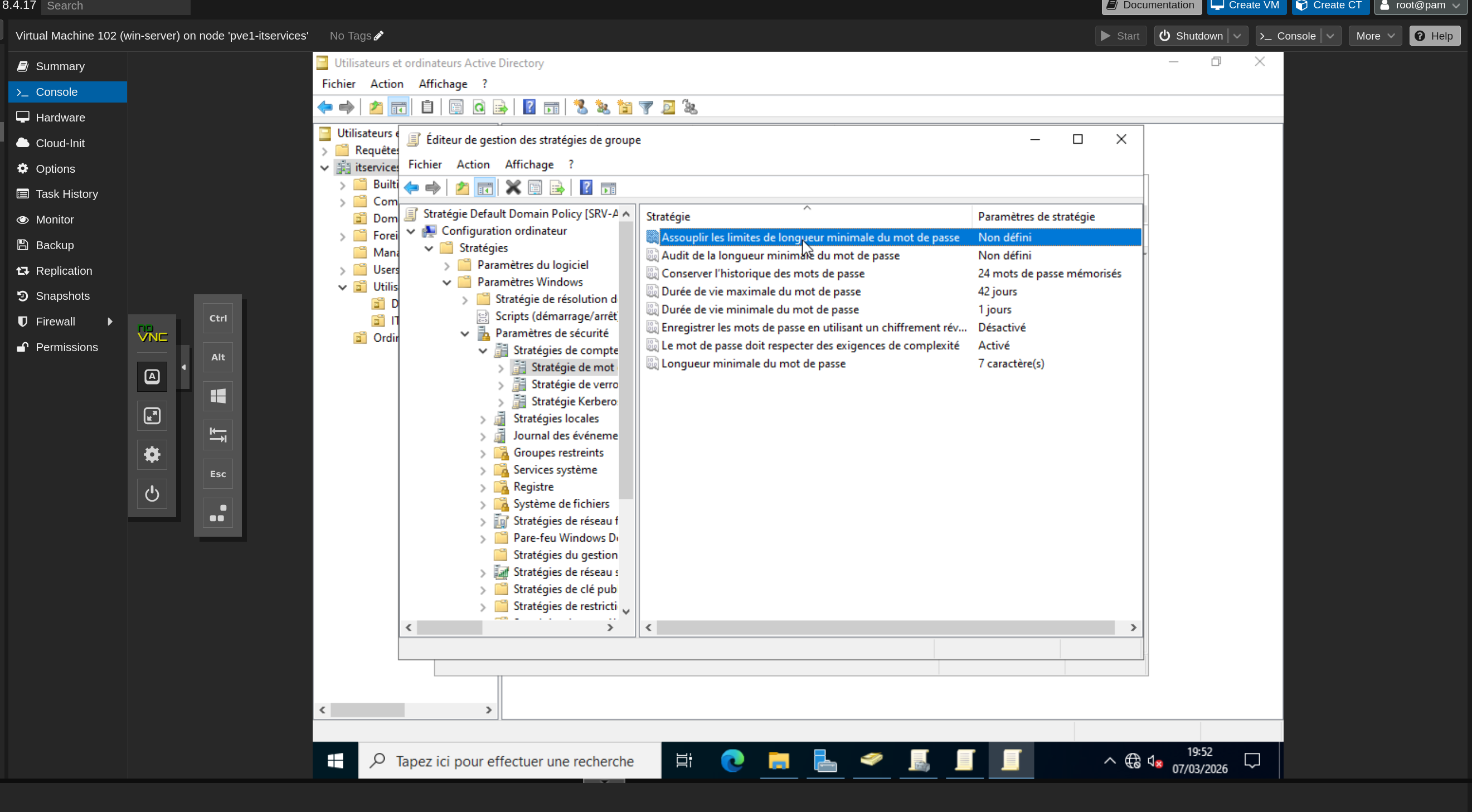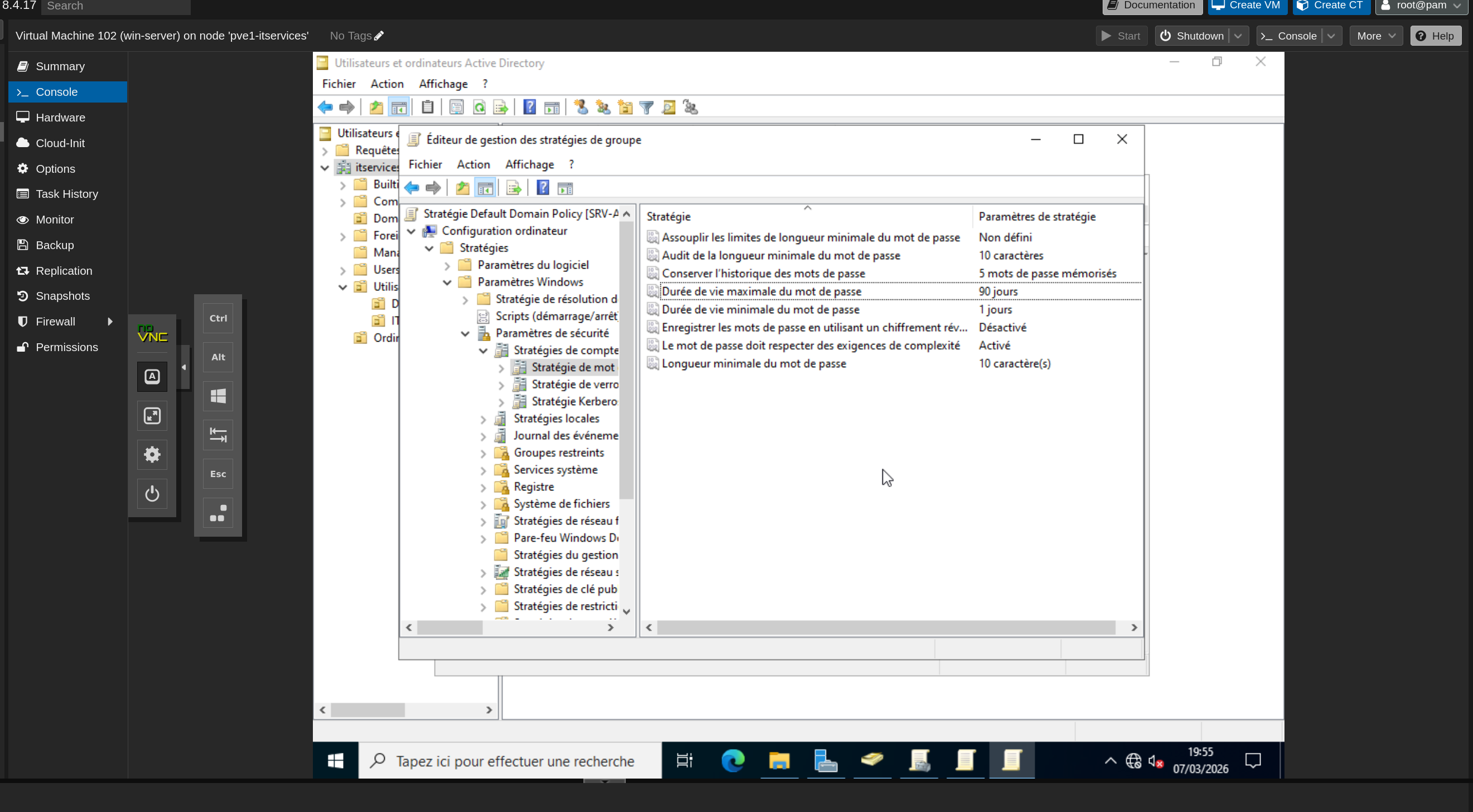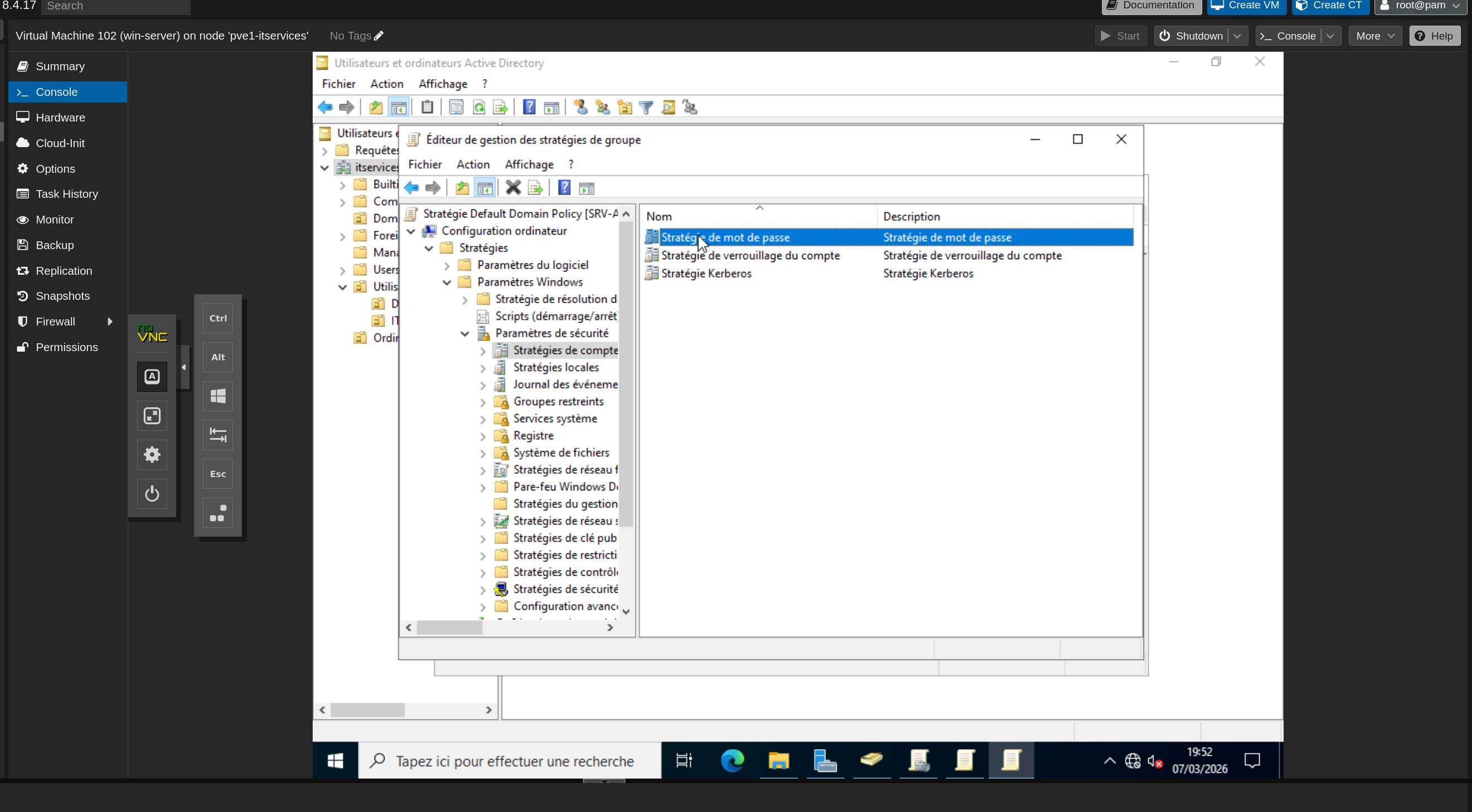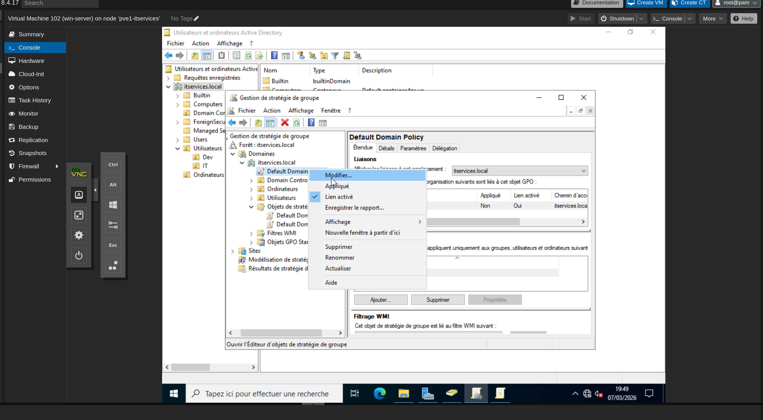 - Démarrer la VM restaurée et vérifier que les services AD sont opérationnels