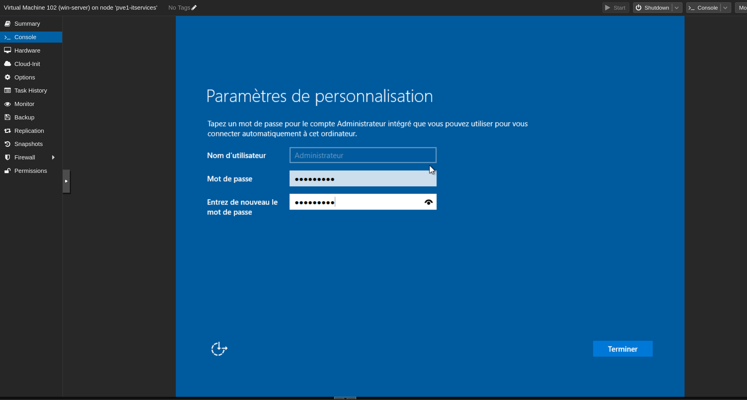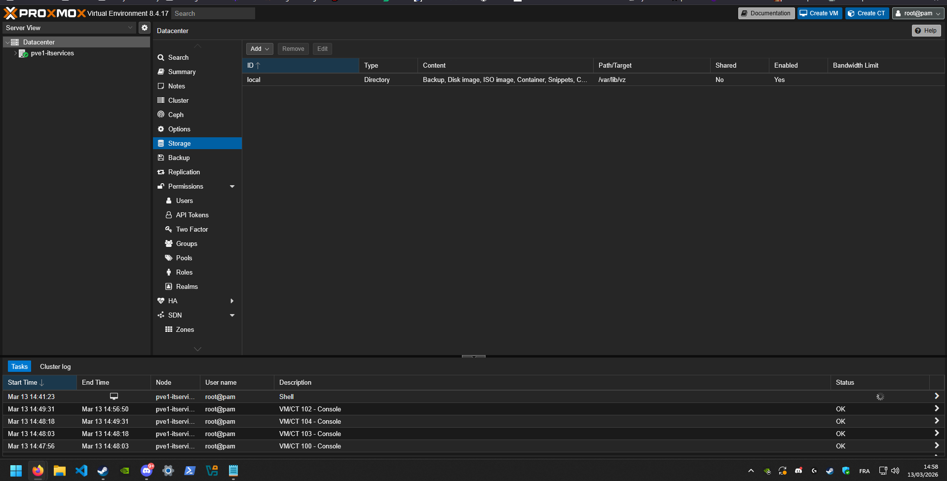 Dans l'interface web Proxmox :