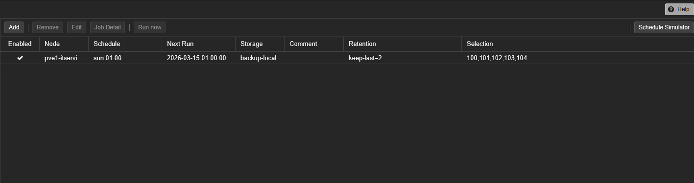 - Dans l'interface Proxmox : Stockage > backup-local > Sauvegardes