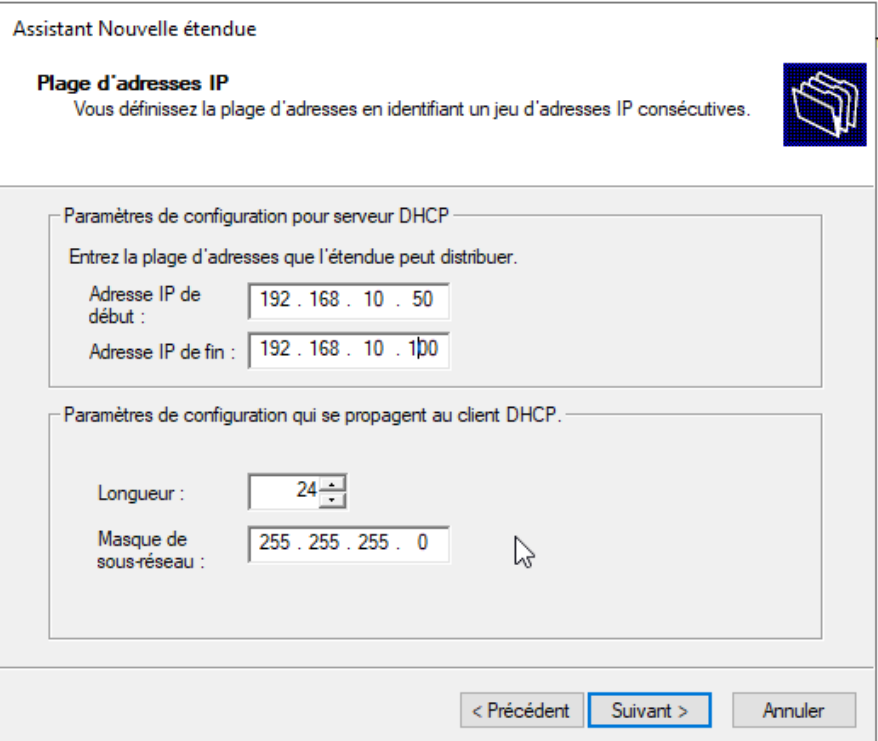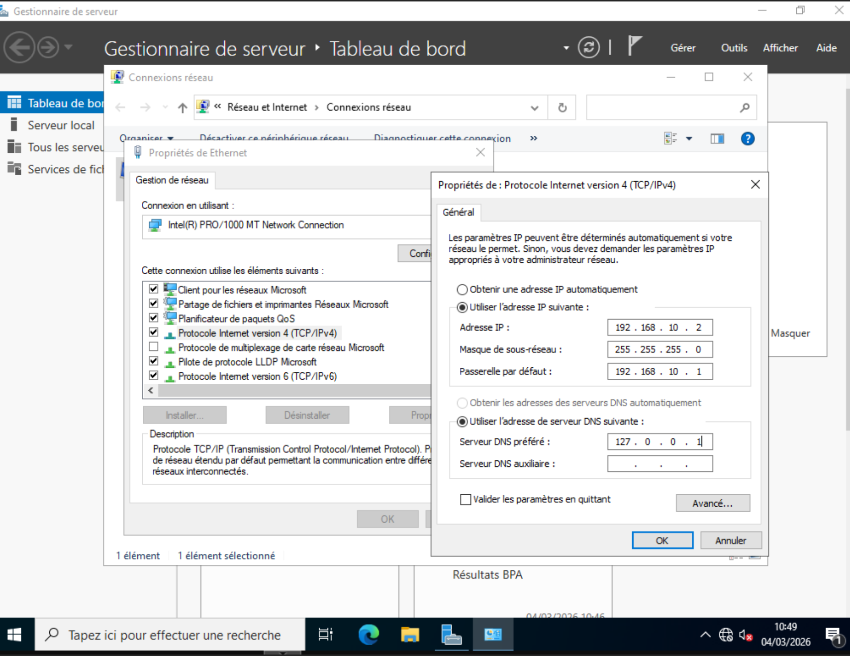 DNS primaire : 192.168.10.2 (Windows Server)