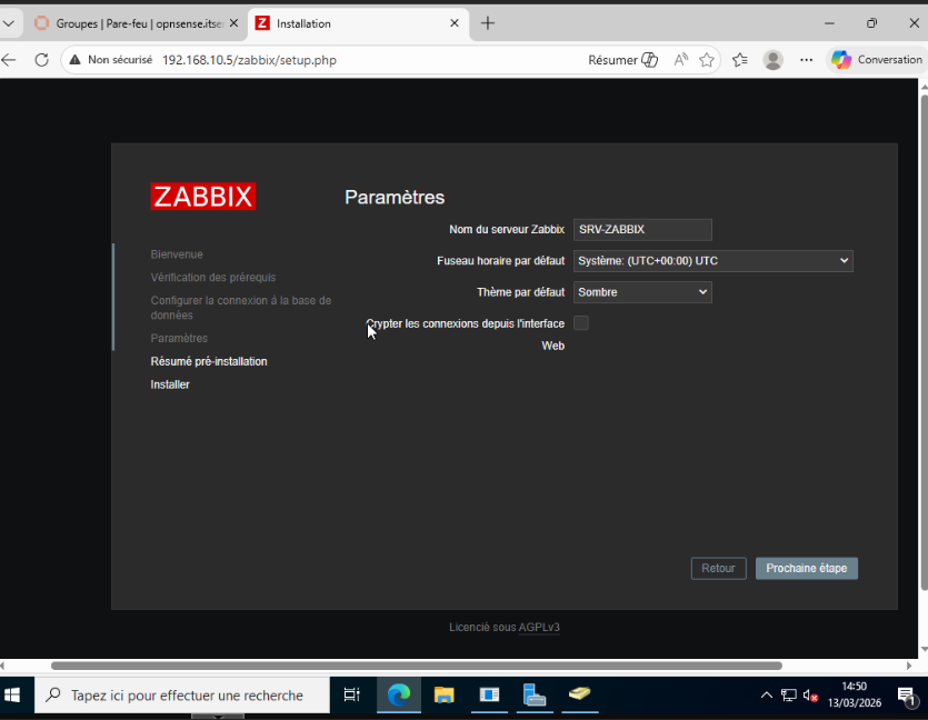Agent Zabbix sur PC-CLIENT1 (192.168.10.10) : port 10050